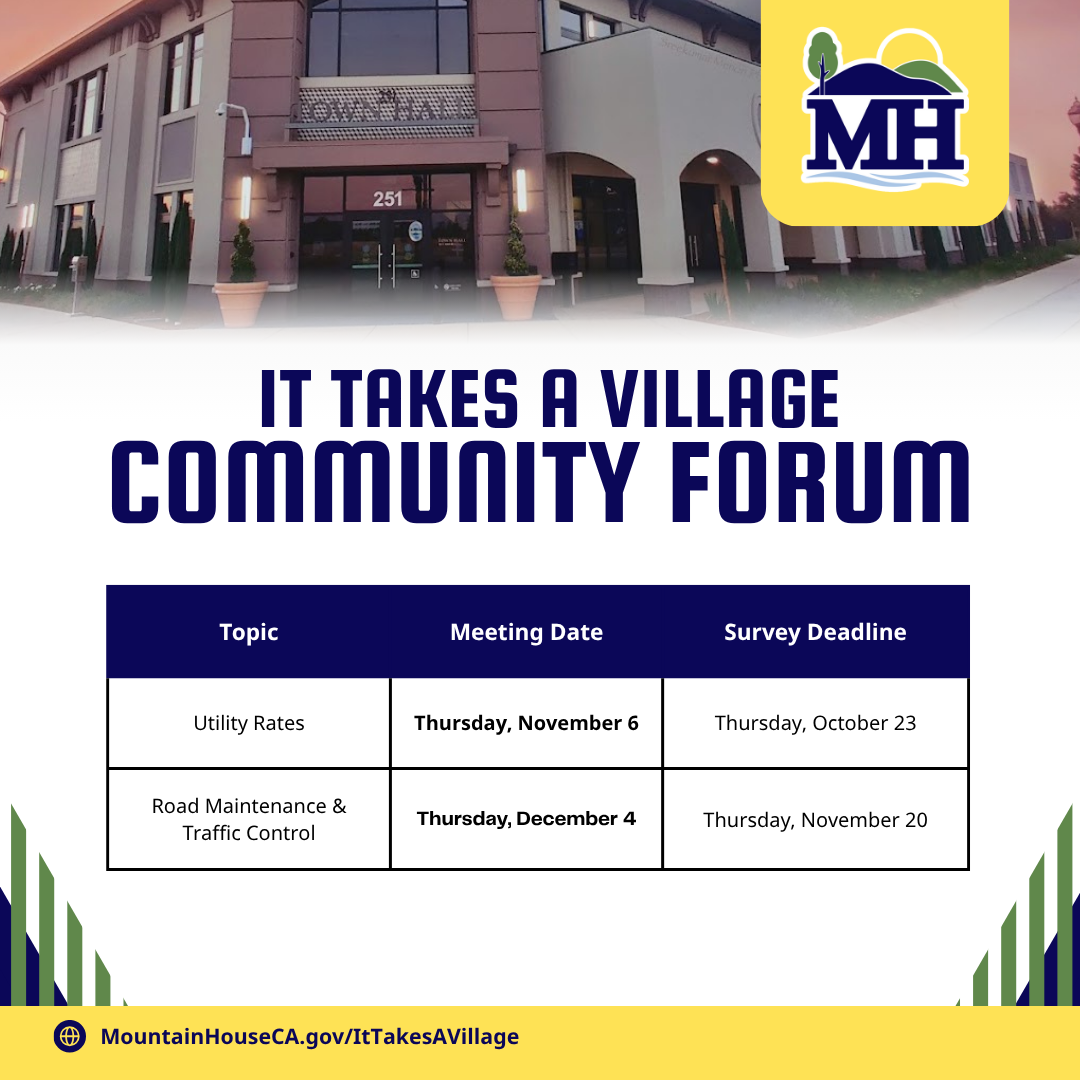 The City of Mountain House is launching a new forum series, It Takes a Village, to bring residents together for important conversations about our future.